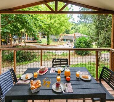 Der Campingplatz La Chataigneraie bietet: voll ausgestattete Mobilheime für bis zu 10 Personen. Es gibt verschiedene Baureihen. Weitere Informationen